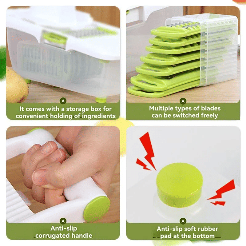 KYCOR-Kitchen Grater Multifunctional Vegetable Grater With Container Home Kitchen Slicer Potato Grater Cheese Grinder [Extra Large Blades and Graters]As a vegetable grater with container, the massive blades and grater allow you to complete food preparation in much less time! It is an efficient potato slicer and cheese grater! So you've got extra time to do what you love! [Multiple Ways to Use]This cheese grater with container has multiple ways to use, you could put it on the reducing board, or use it with the container! So you need to use it as a vegetable slicer, shredder, cheese grater or kitchen grater! It assist you to preserve your countertop tidy! [8 Different Blades]As a vegetable shredder and vegetable slicer, this multifunctional vegetable cutter contains 8 blades that can be used for slicing, shredding and julienne So it is your favorite shredder vegetable cutter, carrot shredder, potato slicer, kitchen grater [Durable Stainless Steel Material]As the core part of the mandoline slicer and cheese grater, all blades are fabricated from sturdy stainless-steel material, so this kitchen accessory is appropriate to be used as a salad chopper, potato grater, fruit chopper, vegetable chopper with container, and cheese grater with container [Unique Anti-slip Design]When using graters, peelers, and slicers, it is very important to remain steady and safe, and the anti-slip rubber can deliver you a closer experience, you may actually like this slicer vegetable cutter, cheese shredder, and additional vegetable peeler [Easy to Clean Up]Cleanup is very important Due to its ergonomic and compact design, this vegetable slicer is so easy to clean Just rinse it under working water, so that you can desire it as a food slicer, vegetable slicer, cheese slicer, and kitchen accessory Color: As Shown Material: PP+ABS+Stainless Steel Package Contents: 1 x backside box 1 x hand protector 8 x fruit and vegetable grater Only the above package content, different merchandise are not incorporated Note: Light reflection and diverse exhibits may cause the colour of the article within the photograph a little bit diverse from the real thing The measurement allowed error is +/- 1-3cm