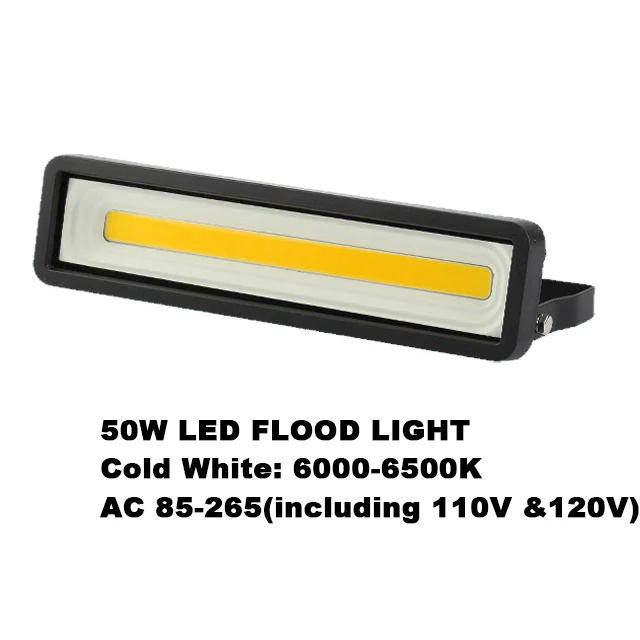 LED Flood Light Floodlights 50W Spotlight Outdoor IP65 AC85-265V Waterproof Floodlight Garden Garage Square Street Light Specifications:Product Name: High Brightness LED FloodLightPower: 50WInput Voltage: AC85V-265V(Including 110V 120V)Led Color: Cold White(6000-6500k) /Warm white(3000-3500k)Waterproof Level:IP65(can now not put into water)Material: Die-Casting AluminumIllumination attitude (degrees): a hundred and eighty degreeSize: 70mm*280mmLumens:5000LM