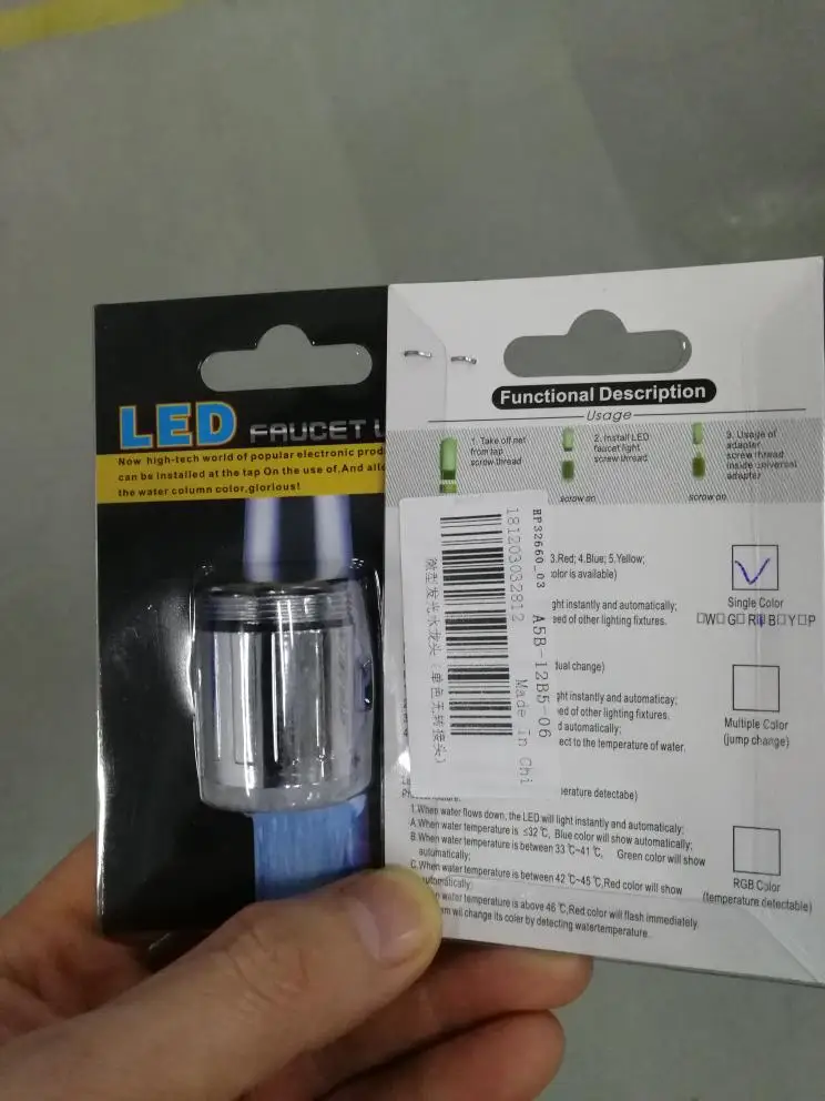 LED Temperature Sensitive Faucet Water Saving Kitchen Bathroom Sensor 7 Color Change Faucet Head Aerator Tap Nozzle ShowerDescription: You might wondered with the temperature of water except you contact it, now with this machine this case is solved to install and use. This little machine fits on most faucets and lighting up a set of LEDs when you activate the tap the flow of water right into a beautiful waterfall of light touchy faucet mushy will substitute colours in step with the temperature of water color`s exchange remind you the water`s temperature batteries and outdoors energy supply, it will eliminate darkness from after water flows down via water flows you a delight & superb experience chroming material, excellent corrosion resistance, sturdy for bathroom or kitchen to make it fantastic: Material: ABSLED emitting color: Green, Red & BlueSize: 24*35mm(outside diameter * height) Package Included: 1 x LED FaucetNotes: 1. Due to the variation between diverse monitors, the pictures will not mirror the particular coloration of the item. Compare the element sizes with yours, please allow 1-3cm error, thanks to manual measurement. Please leaving a message earlier than you give the dangerous feedback, if the goods have some issues to your understandings.