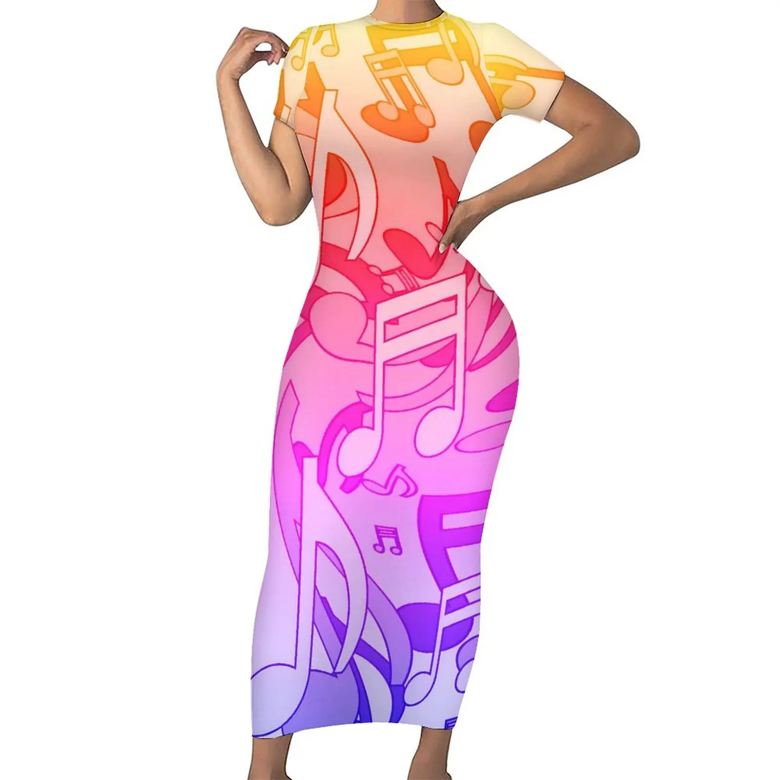 Lively Music Notes Dress Short Sleeve Ombre Print Street Wear Maxi Dresses Kawaii Bodycon Dress Female Graphic Oversized Clothes