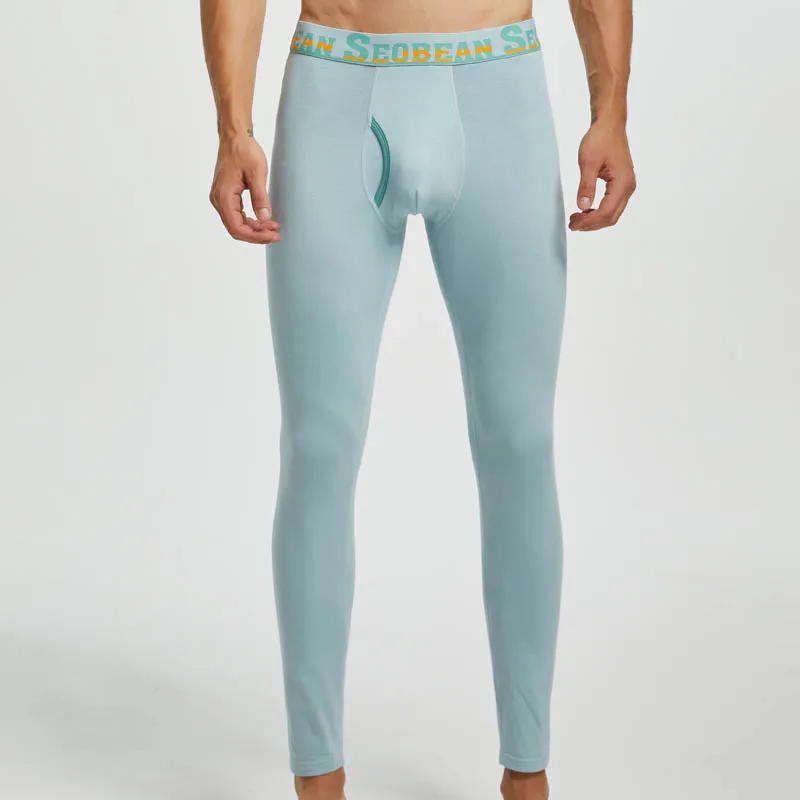 Men Thermal Underwear Fashion Patchwork Color Cotton Long Johns Sexy Bulge Pouch Men Legging Tight Pajama Bottom Sleep Pants