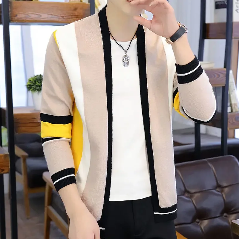 Mens Clothes Spring and Autumn Striped Cardigan, Youth Wool Coat ,Plus Size Winter Cardigan,Korean Fashion Top Knitted Sweater