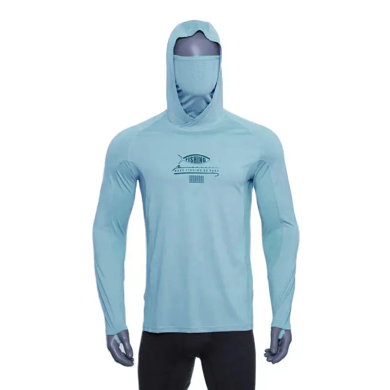 Mens Hooded Fishing Shirts with Mask UV Neck Gaiter Hoodie Men Hooded Fishing Shirt Fishing Hoodie Moisture Wicking UPF 50+