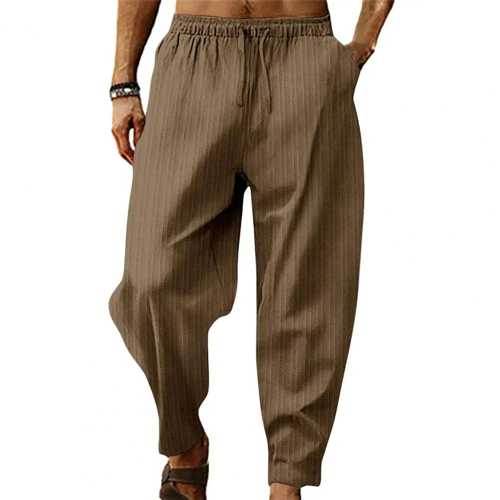 Men's Spring Autumn Casual Solid Color Pants Fashion Drawstring Elastic Waist Striped Trousers Loose Comfort Sweatpants