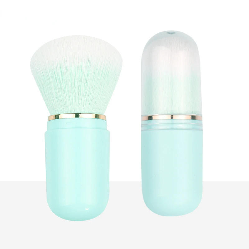 Mini powder blusher brush travel portable retractable capsule makeup brush with cover for convenient storage beauty tools