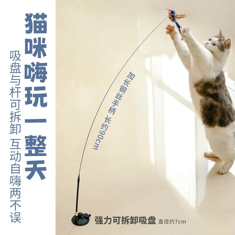 New Handfree Bird/Feather Cat Wand with Bell Powerful Suction Cup Interactive Toys for Cats Kitten Hunting Exercise Pet Products