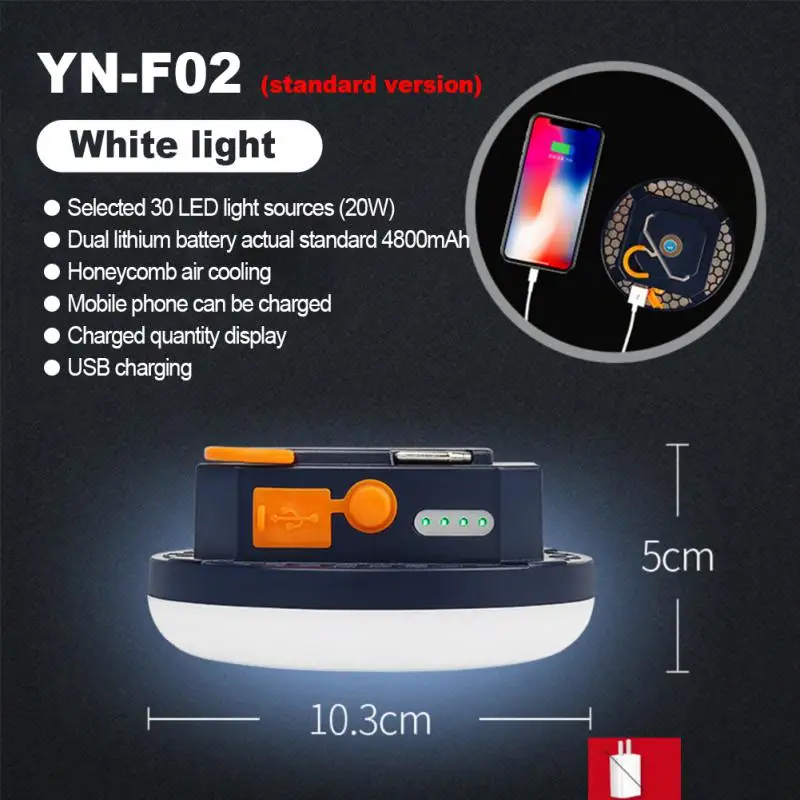 NEW LED Tent Light Rechargeable Lantern Portable Emergency Night Market Light Outdoor Camping Bulb Lamp Flashlight HomeDescription: Product name: led charging lampHeat dissipation system: new technology honeycomb air cooling immediate warm temperature dissipationBrightness calories consumption: 30Wled energy consumptionCharging mode: USB chargingBattery capacity: as proven in figureProduct diameter: as proven in the figureProduct weight: as shown in the figureSpecifications: Features:1. Emergency lighting, evening lighting, outdoors recreation, camping, hiking, hunting, climbing, fishing, reading, etc. Multi-purpose LED camping light, emergency night, table lamp, wall hanging lamp, safe and effort saving; transportable with immoderate brightness. For camping, reading, table, wall, boating, fishing, vehicle fix and so on. Package Included: 1 * Charging cable1 * Magnetic disk1 * LampNotes: Don't go away 1 star and about a superstar suggestions without requesting assist you have any questions, please touch us. We will attempt our greatest to unravel any issues and provide you with the finest visitor service.