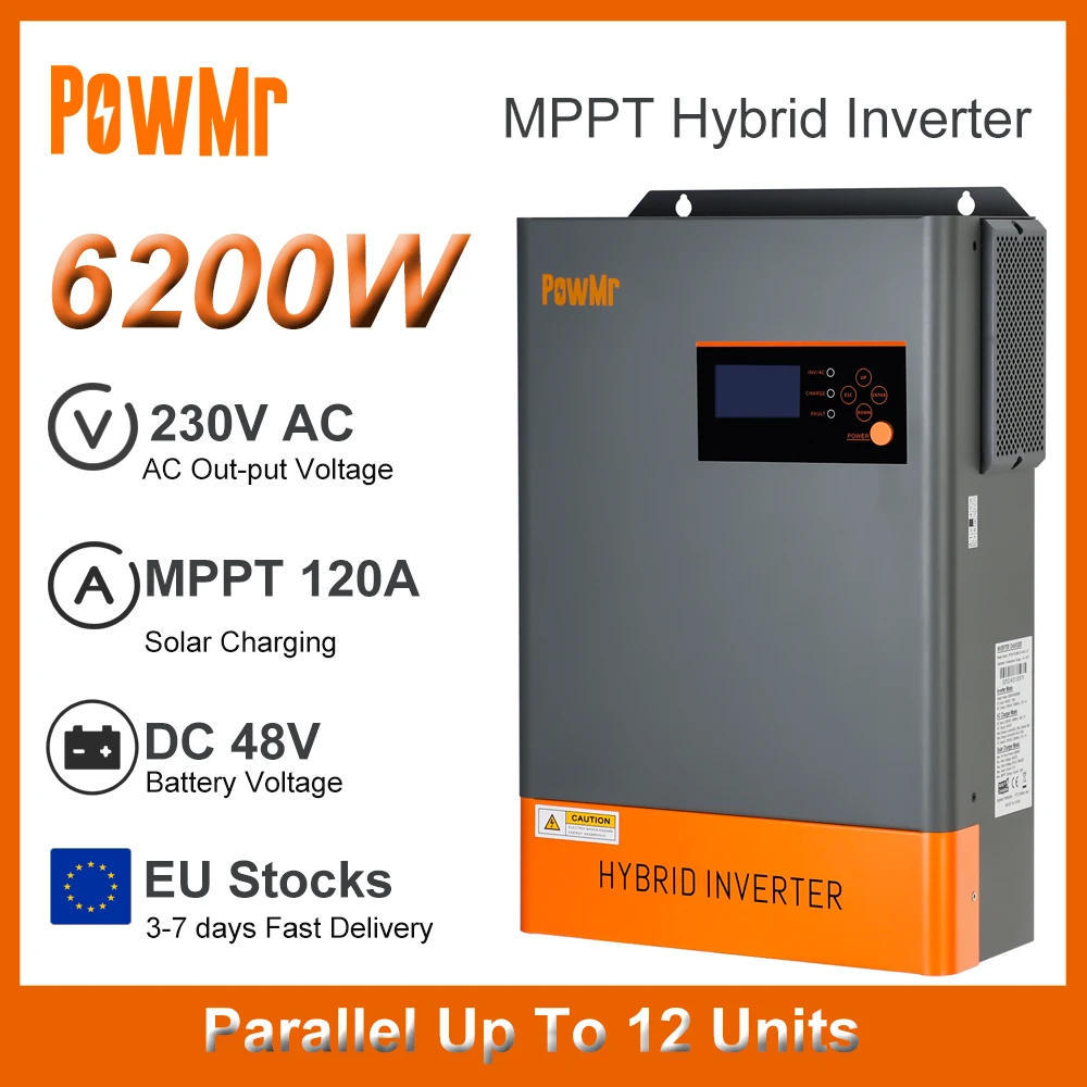 Parallel Hybrid Inverter 6.2KW 48V DC to 230V AC With 120A MPPT Solar Charge Max Solar Panel PV 6500W Fit for Lifepo4 EU Stock
