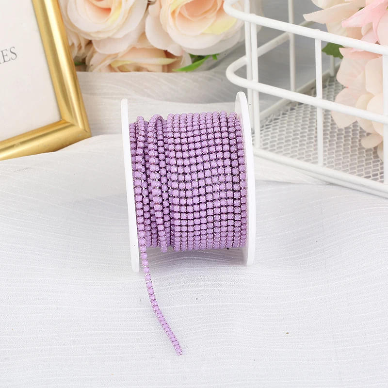 PEESOM New! SS6 2mm Colorful Bottom Sewing Rhinestone Cup Chain DIY Sew On Cup Chain Glue On Acrylic Rhinestone Beaded Trim