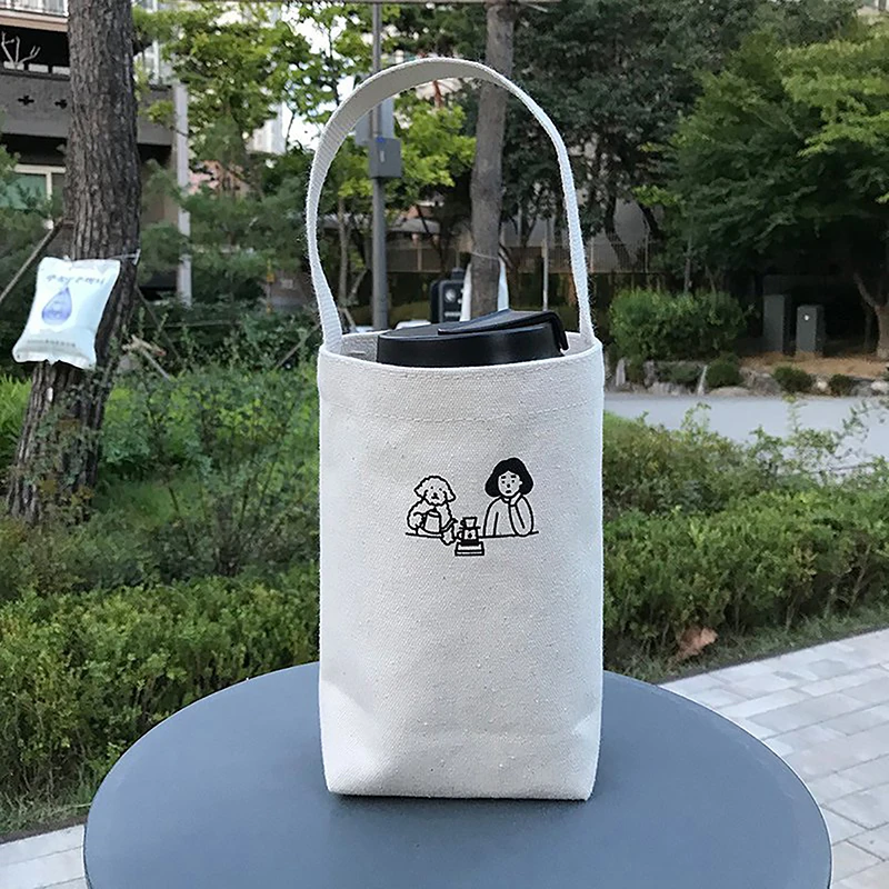Portable Canvas Tote Bag Water Cup Bottle Holder Eco Mini Storage Small Handbag For Coffee Milk Tea Red Wine