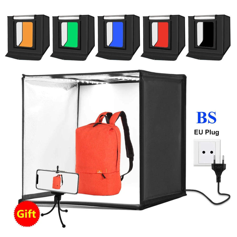 Specifications 1 Material: Nylon Cloth 2 LED Quantity: 2 x 60 PCS three Lumen: 2 x 1690LM 4 Color Temperature: 5500K five Power Supply: Input: AC 100-240V 1; Output: 12V 3A 6 Power: 36W 7 Size: 60x60x60cm / 24x24x24inch (Unfolded), 60x60x2 /24x24x1 (folded) Features 1 Helpful picture studio: This photo studio light tent is designed for photographers or people who want to take official images but haven't got advanced equipment 2 It is easy to put in with the aid of hook loop fasteners, no instruments required and you can establish it inside 1 minute, particular fold-storage design, would not have extra packages, for wearing 3 2 LED strip: Built in 2 tremendous LED strips, pictures studio supports you to take premium photos, 5500K LED lighting fixtures can soften and mirror lights, eliminate glare and spots for an excellent taking pictures four Multi-angle shooting: Portable gentle field is designed to fulfill your various calls for that shoot goods from assorted angles, the entrance window helps a horizontal taking pictures and the end gap helps a ninety levels vertical shooting, you might take clean pictures in white background with various devices reminiscent of for iPhone, sensible phones, cameras or legit cameras 5 Practical and portable: Mini studio is portable due to the fold-storage design, the size is 60x60x60cm, great for taking photograph for small gadgets corresponding to toys, jewelry, watches, headphones, pens, dishes, cookies, etc, it's also an amazing present for photographers, bloggers and artisans who wish to present their works Package List 1 Main Studio Box x 1 2 Black backdrops x 1 3 White backdrops x 1 four Orange backdrops x 1 5 Blue backdrops x 1 6 Red backdrops x 1 7 Green backdrops x 1 eight Light board x 2 nine Soft material x 1 10 Power delivery x 1 11 User handbook x 1 12 Color package x 1 thirteen Small holder x 1 14 Mobile cellphone clamp x 1