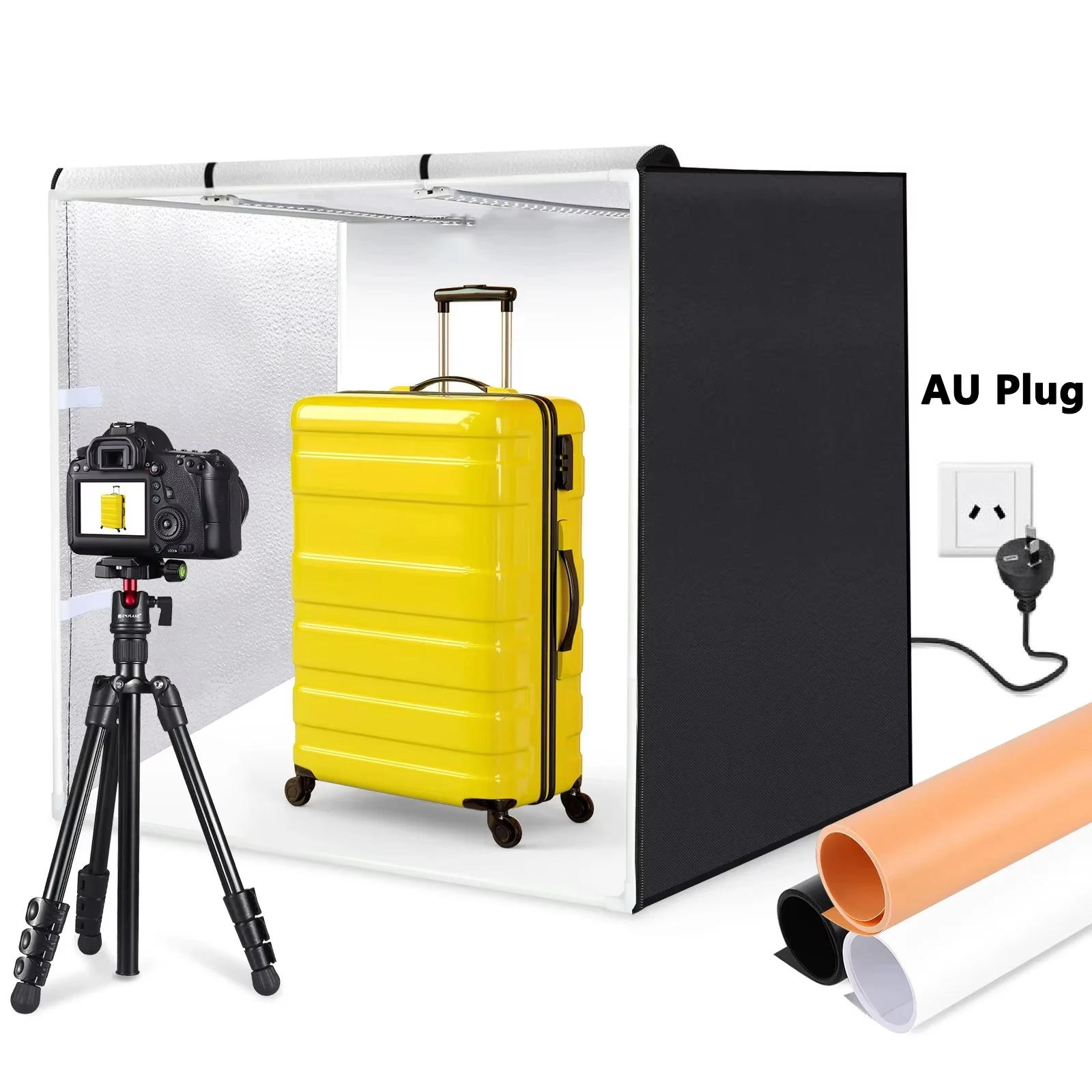 Dual LED 80cm Photo Studio Box Features 1 Comes with a wearing bag and three items of background paper boards (White, Black, orange) The paper forums are wrinkle resistant and waterproof 2 Photo studio with foldable design which is unfolding a whole new point of possibilities in smartphone photography 3 It permits everybody to take awesome, studio-quality photographs with a smartphone using a straightforward setup 4 Do now not worry about taking high quality images for your on-line store merchandise anymore 5 All-in-one transportable studio smooth to use 6 With 12pcs fiberglass assist bars, sturdy and sturdy 7 Very clean to install! No different tools mandatory for the set up and un-installation Your bare palms are the simplest issues crucial for the installation Space saving and very flexible Can be utilized on diverse events or elsewhere Package List 1 Main Studio Box x 1 2 Black Backdrops x 1 3 White Backdrops x 1 four Orange Backdrops x 1 five Soft Cloth x 1 6 Power Supply x 1 7 Light Board x 2 eight Three-way Connectors x 8 9 Support Bars x 12 10 Package Bag x 1 General Material Nylon Cloth LED Quantity 2*78 PCS Lumen 9050LM Color Temperature 5500K Power Supply Input: AC 100-250V; Output: DC 18V 1 Power 80W(40W*2) Available Plugs US Plug Size 80*80*80cm / 31*31*31 (Unfolded) Package Include Package Contents 1 x Main Studio Box 1 x Black backdrops 1 x White backdrops 1 x Orange backdrops 2 x Light Board 1 x Soft Cloth 1 x US Plug Power Supply 1 x Package Bag eight x Three-way connectors 12 x Support bars