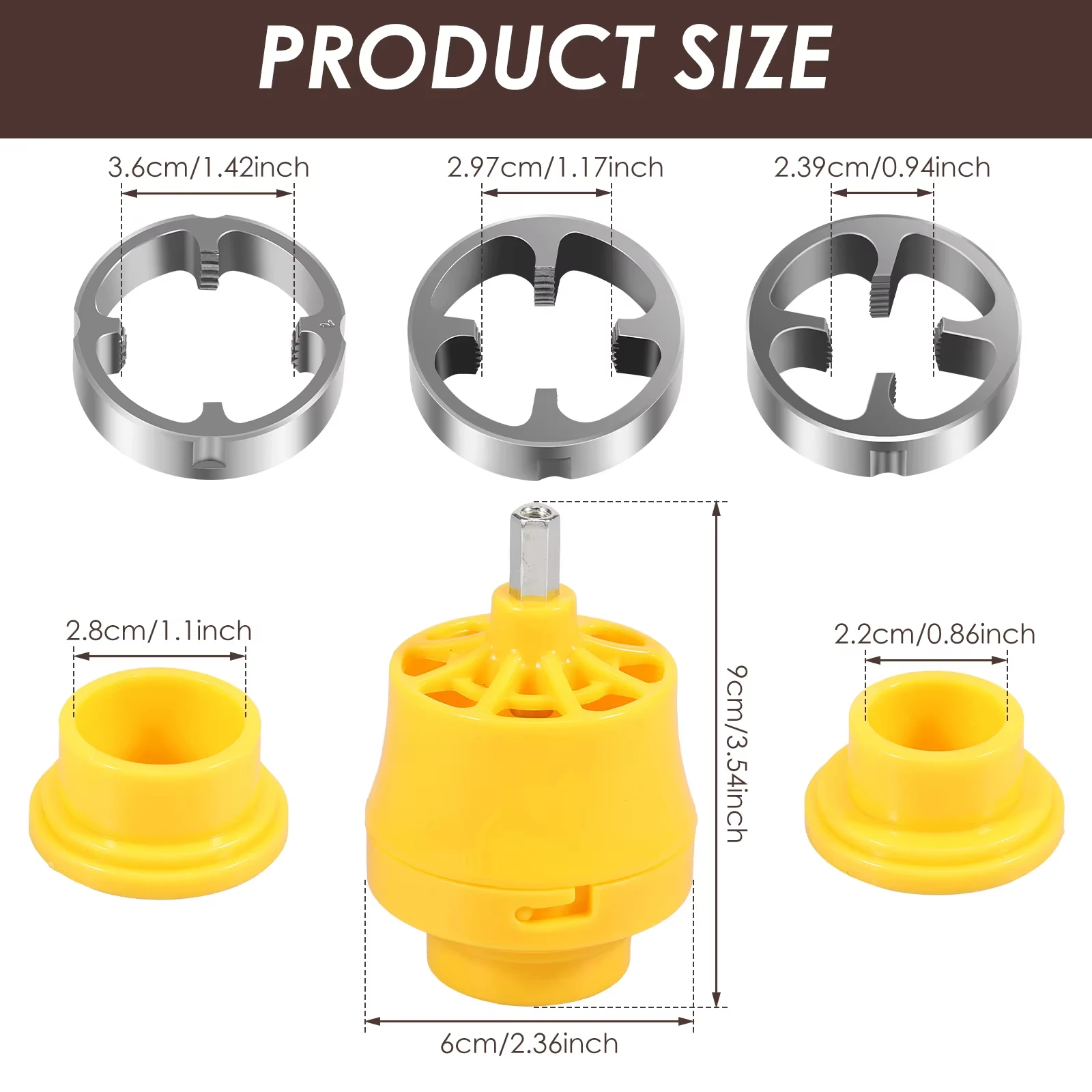Material: Alloy + ABS Size: 9x6cm Shank diameter: 1/4in Size: 1/2in, 3/4in and 1in three Thread Sizes: Package entails dies for 3 thread maker sizes including half of NPT, 3/4 inch and 1 inch Threads are standardised to NPT to satisfy the needs of your paintings Precision Cutting: Threads are crisp and burr free The alloy edge remains incisive for an actual lower every time, making it compatible for PVC plastic pipes Please be aware that it is not suitable for steel pipes Alloy Material: The mold is fabricated from alloy material, which is hard, wear resistant and reliable, suitable for long run use Suitable for Electric Drill: 1/4 inch shank diameter, compatible to be used with every kind of electric drills and lithium drills Easy to apply for both learners and experts Efficient: The Pipe Threader Kit can be used with electric drills, which tremendously improves the working efficiency, they offer a secure and steady connection, which greatly facilitates your cleansing work pack list 1 x Plastic Pipe Mould 3 x Threaded Mould 2 x Round Moulds OR 2 x Plastic Pipe Moulds 6 x Threaded Moulds 4 x Round Moulds