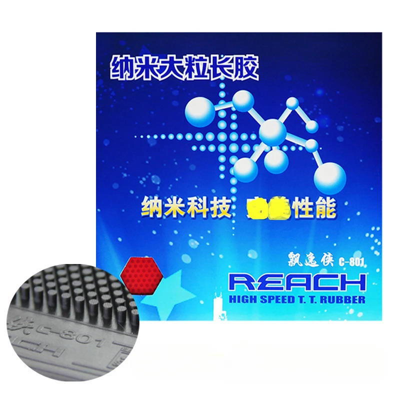 REACH C-801 Long Pimples OX Table Tennis Rubber Height 3 Diameter 2 Ping Pong Rubber without Sponge with Counter-loop Product Overview The REACH C-801 is a protracted acne table tennis rubber designed for players who prioritize excellent management and spin variation Featuring a sponge-less OX structure, it is ideal for defensive counterattack kinds or athletes skilled in generating abnormal spin Its exotic pimple design and high-density association provide exceptional anti-spin capabilities and exact maneuverability, particularly excelling in countering powerful loop shots This rubber is the best desire for disrupting opponents' rhythm and dismantling aggressive plays throughout suits Key Specifications Rubber Type: Long Pimples Rubber Structure: OX Version (sponge-less, immediately attached to the blade for enhanced tactile feedback) Pimple Height: 3 (extended pimples boost spin interference) Pimple Diameter: 2 (dense layout improves stability) Recommended Placement: Backhand (primary) or forehand (adjustable in accordance with playstyle) Skill Level: Intermediate to professional players Core Performance Features Sponge-less OX Structure Eliminates the sponge layer, permitting direct blade attachment for clearer suggestions and heightened sensitivity, suited for players nerve-racking precise placement and rapid reactions Lightweight design reduces racket weight, recovering swing pace and seamless transition between offense and protection Long Pimples Technology & Anti-Spin Performance three Extended Pimples: Prolonged contact with the ball effectively neutralizes incoming spin, particularly excelling at countering loop pictures The unpredictable ball trajectory confounds opponents 2 Pimple Diameter: Densely packed acne enhance floor stability, minimizing spin susceptibility during protection while protecting the signature reverse-spin effect of lengthy pimples Active strokes generate sharp spin contrasts