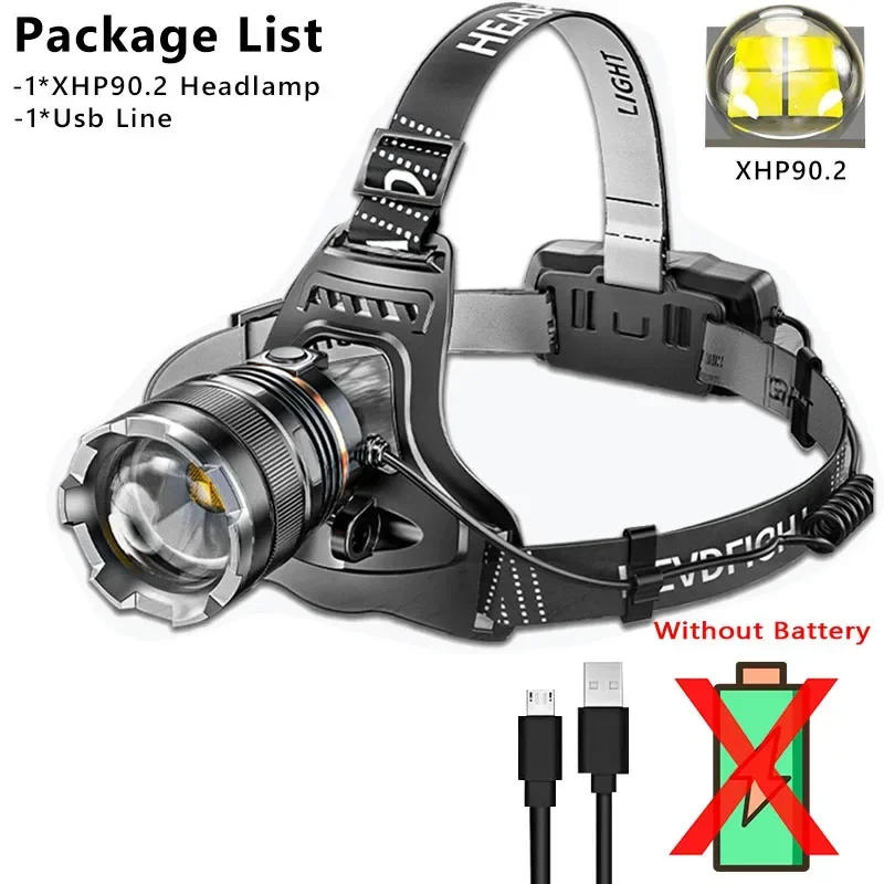 Rechargeable XHP90 LED Headlamp Waterproof Head Light Fishing Searching Camping Head Flashlight Zoom Lantern