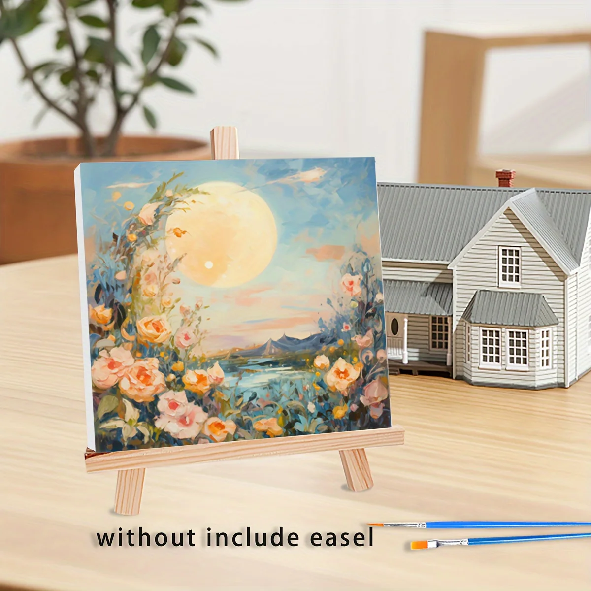 RUOPOTY Framed Painting By Numbers Kits Cartoon Moon Flowers Modern Wall Art Acrylic Paint By Numbers Starter Kit For Diy Gift