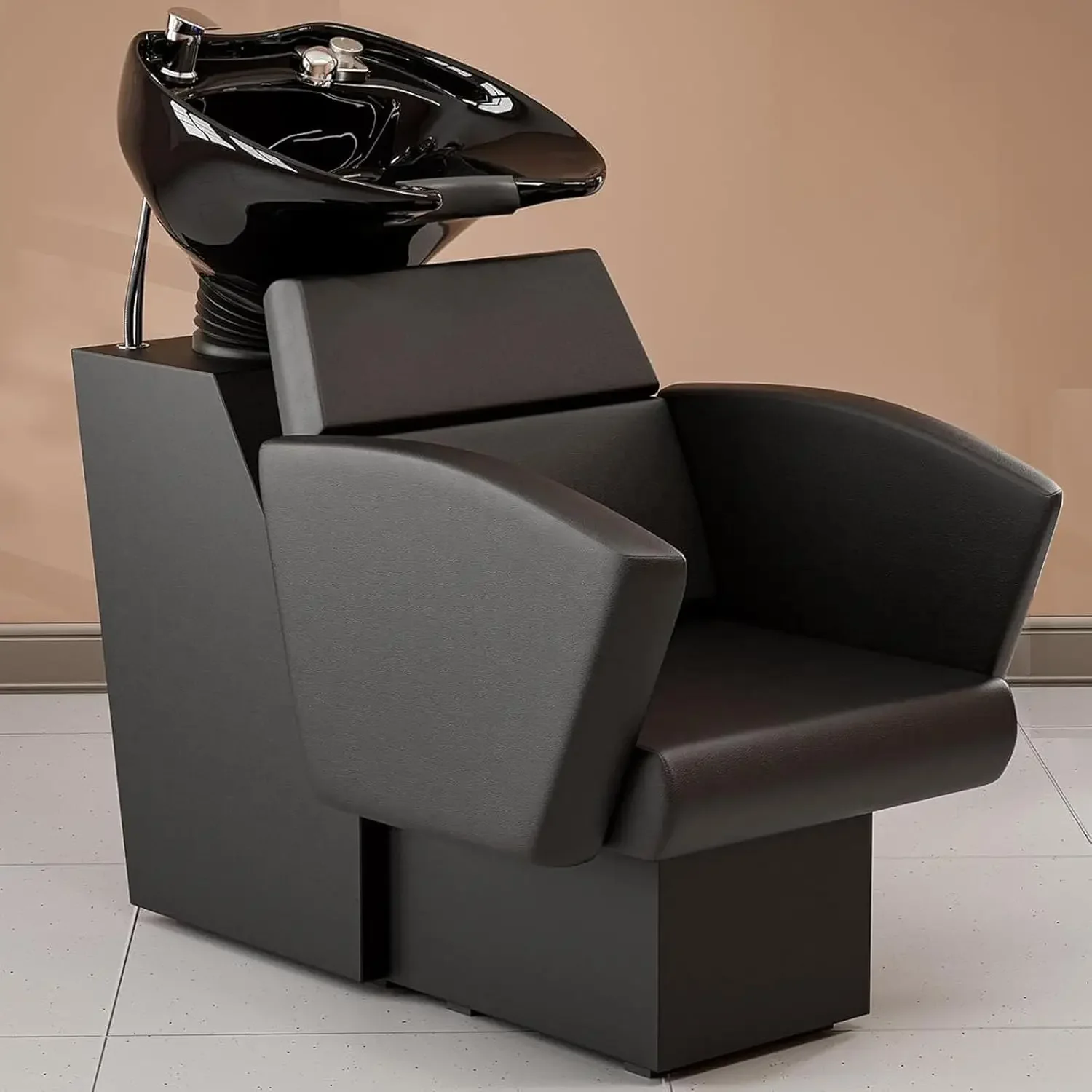 Salon Shampoo Bowl and Chair Set 2PCS, Backwash Shampoo Stations Tilting Hair Wash Chairs w/Deep Porcelain Sink, Shampoo Chairs