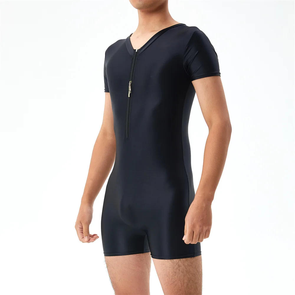 Sexy Men Undershirts Zipper Shorts Sleeve Seamless See Through Bodysuits Singlet Leotard Elastic Slip Sheer Jumpsuits Underwear
