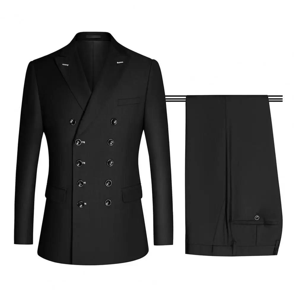 Suit Jacket Long Sleeves Lapel Double-breasted Placket Straight Down Hem Business Flip Pockets Men Blazer Pants Business Suit