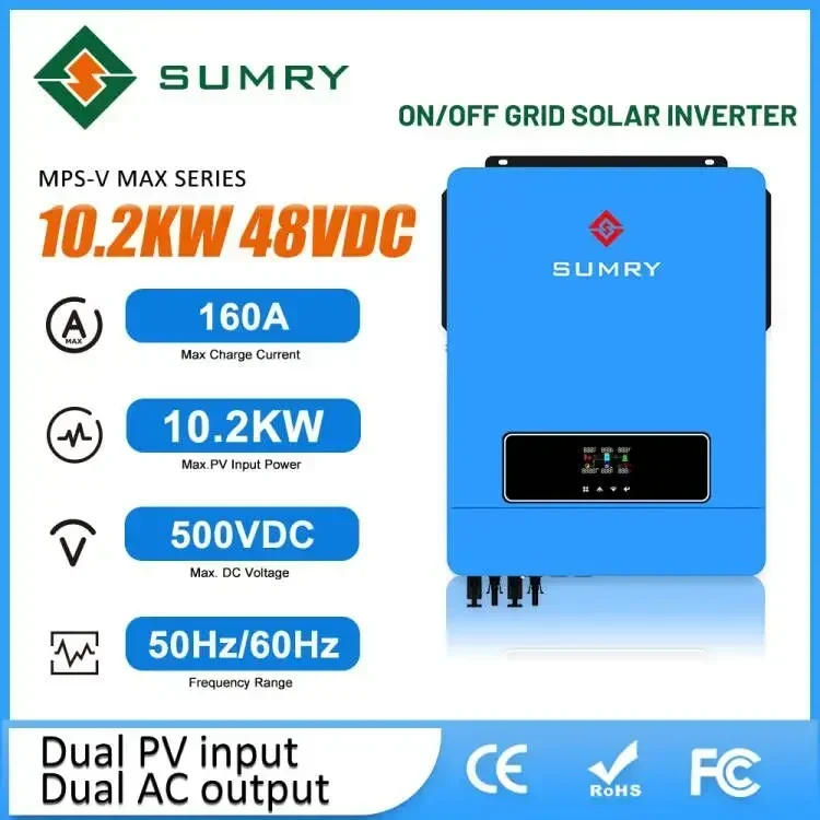 SUMRY on/Off Grid Solar Inverter 10.2kw 48VDC To 220VAC MPPT Solar Power AC Hybrid Inverter Generator Dual Output