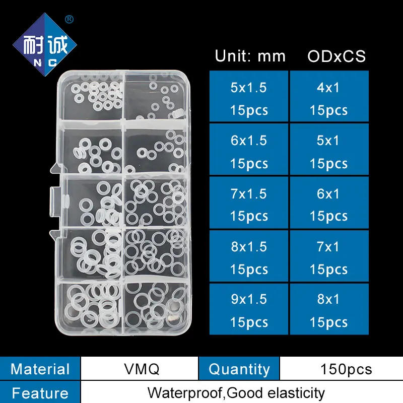 Thickness 1/1.5/1.9/2.4/3.1mm White Ring Silicone ORing Seal Silicon Sealing O-ring VMQ Washer oring Assortment Kit Set Oring-.-