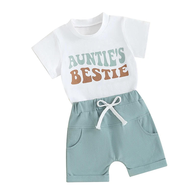 Toddler Boys Summer Shorts Sets White Short Sleeve Letter Print Tops and Solid Color Shorts Sets