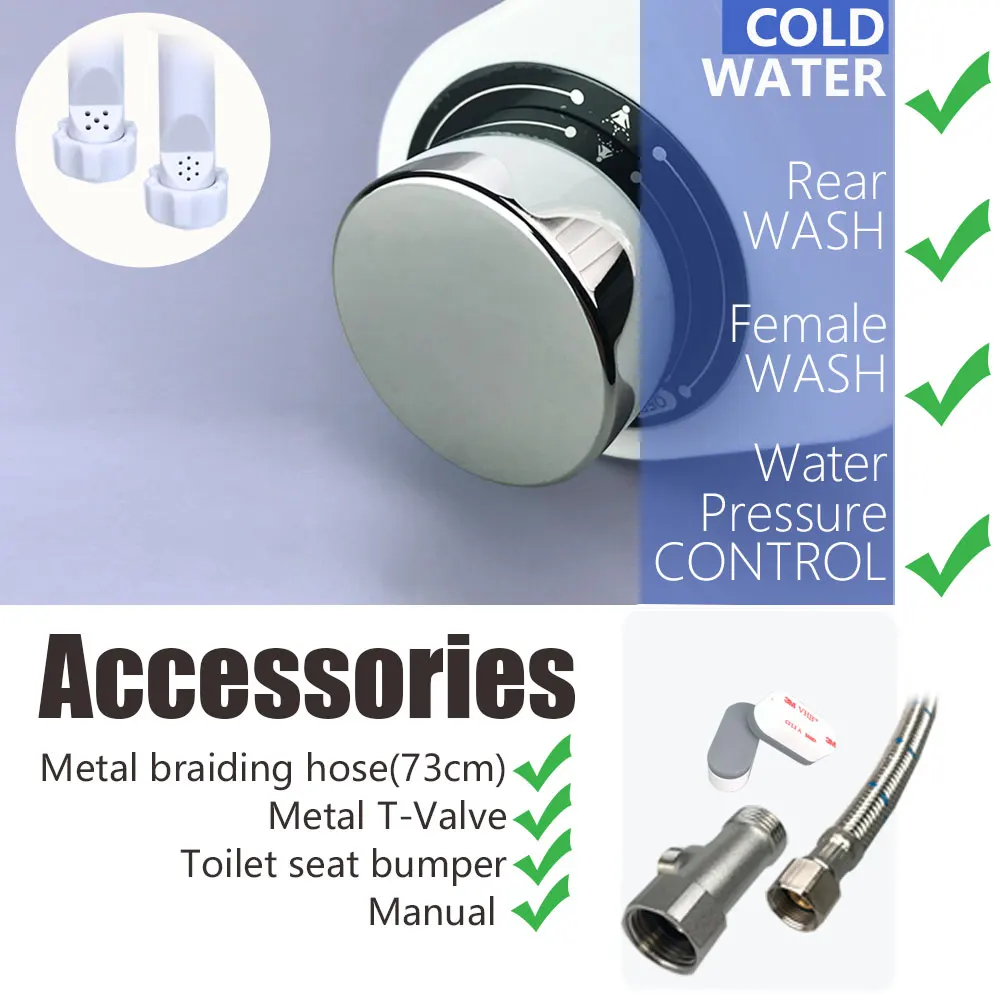 NO ELECTRIC AND ECO-FRIENDLYHiCheon bidet calls for no electricity or batteries with jets of unpolluted is more hygienic than usual paper or moist wipes, reduces the amount of loo paper consumption, it will environmental defense and save you moneyMULTI-FUNCTIONAL PANELRear washFeminie washWater strain controlDUAL NOZZLECARE FOR WONMENWith both rear and entrance washes, the nozzle would be positioned to your liking is a distinctive person nozzle design for feminine designEASY INSTALLATIONAll the fittings are within the field and you'll set up them in 20 minutes . You could have a fascinating DIY installation along with your family. No plumber necessory!Friendly reminders:*The bidet might not adhere bathroom closely due varied rest room brands .*Adjust whenever you like you can try to alter the rotray plate for purchasing nearer .*Gap between bidet and bathroom WON&;T impact operate operating .*Enjoy the astonishing applications from now !