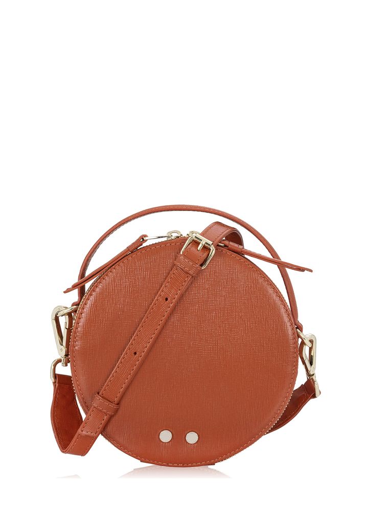 Oryginalna torebka damska o owalnym kształcie w energicznym, rudym kolorze. Wykonana z naturalnej skóry bydlęcej saffiano. Posiadarączkę oraz odpinany, regulowany pasek, dzięki czemu można ją nosić w dłoni, jak i na ramieniu. kolor rudy skóra naturalna bydlęca saffiano model dwukomorowy zapięcie na suwak wewnątrz kieszeń zamykana na suwak podszewka z motywem wilgi elementy metalowe w kolorze jasnego złota nie mieści formatu A4 Wymiary wysokość – 18 cm szerokość – 18 cm głębokość – 8 cm wysokość rączki max – 3 cm długość paska max – 138 cm