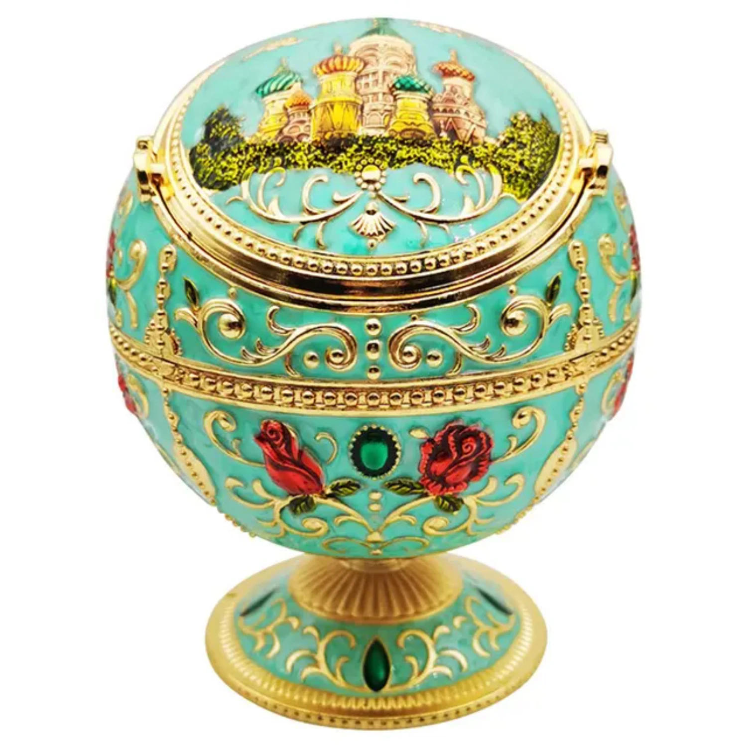 Vintage Royal Spherical Ashtray Windproof with Lid Metal Portable Cigarettes Retro Ashtray Relief Stamped Pattern Gift for Home