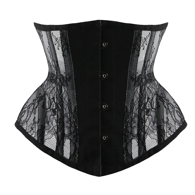 Waist Trainer Corset Top Plus Size Spiral Steel Boned Gothic Women Sexy Lace Mesh Body Shaper Underbust Bustier Black