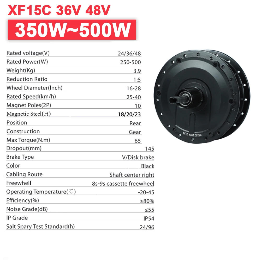 Wheel Hub EBike Motor 36V 48V 350W 500W Brushless Geared Ebike Motor Front Rear cassette Freehub MXUS XF15RCF