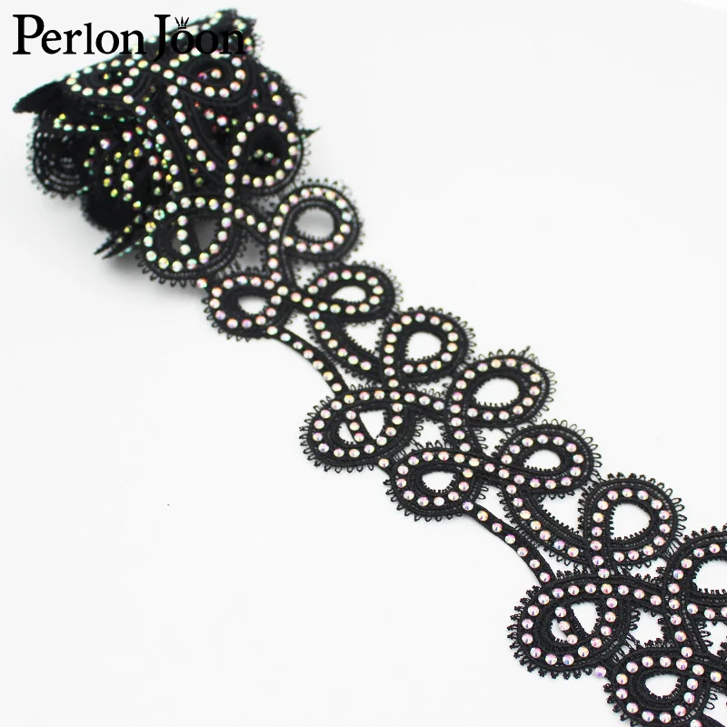 1 Yard 6.5cm Hollow Carved AB Color Rhinestone Lace Skirt DIY Decorative Lace Sewing on Curtain Accessories Webbing Trim HB003