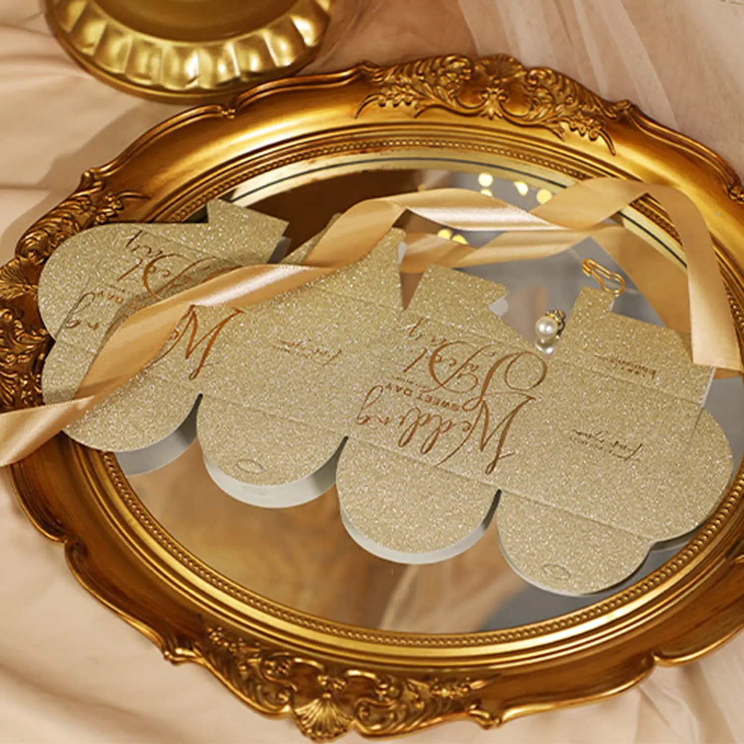 10 PCS Wedding Gift Box, Gold Candy Gift Box Paper Box with Ribbon for Wedding Decoration Party Favor Small Gift Packing