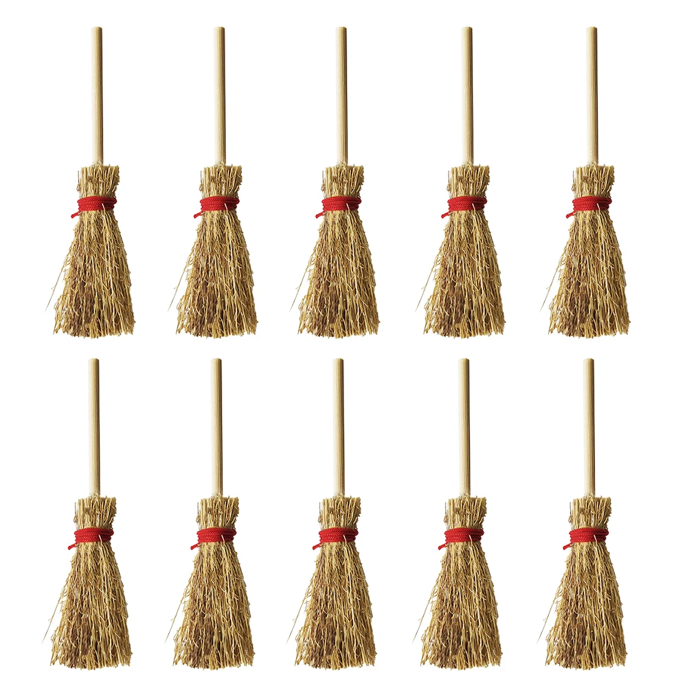 10pcs Mini Broom Witch Straw Brooms DIY Hanging Ornaments for Halloween Party Decoration Costume Props Dollhouse Accessories