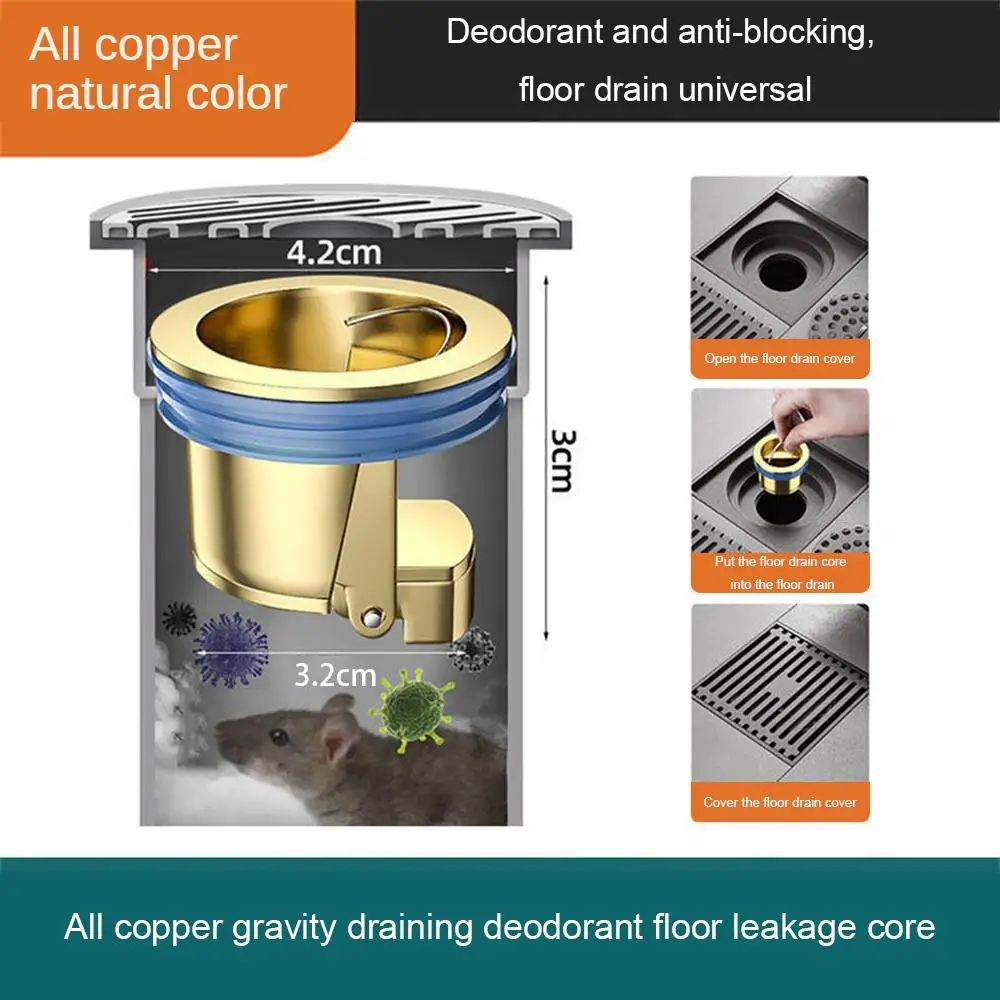 1/3/5PCS Anti-smell Odor Proof Floor Deodorant Core Water Drain Filter Floor Strainer Plug Drain Valve Odor-resistant Description: Product Name: Brass Floor DrainColor: Yellow, SilverMaterial: All CopperStyle: Light LuxurySpecifications: 1. Durable All-copper Floor Drain Core: Multi-functional Innovative Design, Suitable For All Types Of Shower Drains, High-quality -proof And Odor-proof Drain Plug2. Anti-Insect Deodorant Deodorizing Shower Drain Plug: Effectively Prevents Insects And Unpleasant Odors, Adds Style And Function To Any Bathroom3. Multifunctional All-copper Floor Drain Core: Effectively Eliminates Odors, Prevents Clogging, Is Easy To Clean And Maintain, And Can Be Used For A Long Time4. High-quality All-copper Floor Drain Core: Revolutionary Design, Eliminates Peculiar Smell, Prevents Moths, Is Easy To Disassemble And Clean, And Hassle-free Maintenance5. Insect-proof Shower Drain Plug: Keep Your Bathroom Odor-free, Insect-free, Waterproof And Rust-proof, Long-lasting PerformancePackage Included: 1 * Floor drain