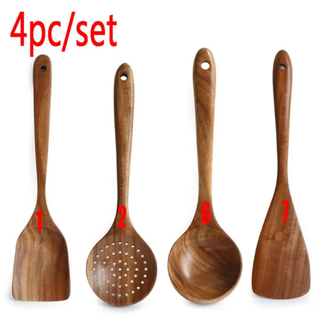 1-7pcs/set Teak natural wood tableware spoon colander spoon special nano soup skimmer cooking spoon wooden kitchen tool kit