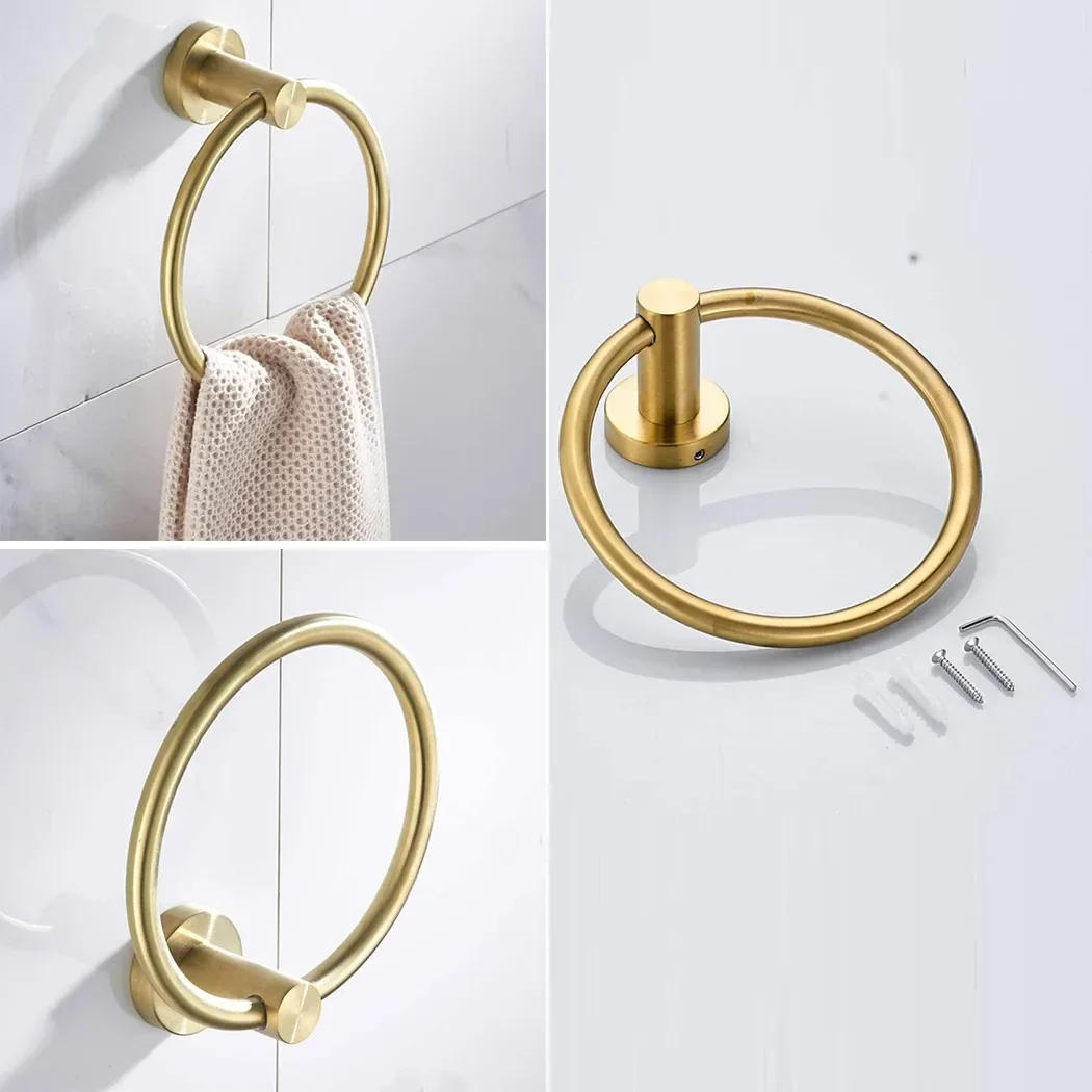 1PC Brushed Golden Bathroom Hanging Towel Ring Holder Industrial Wall Mounted Towel Stainless Steel StorageTowel Hardware Tools