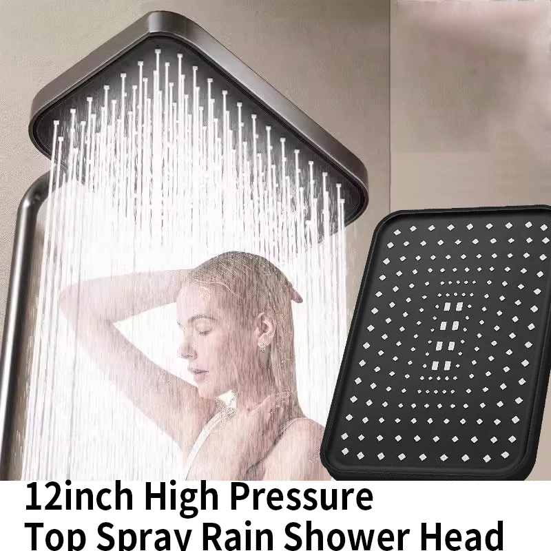 1pc High Pressure Rainfall Shower Head, Luxury Bathroom Showerhead, Adjustable Angles, Anti-Clogging Silicone Nozzles, Water Sav