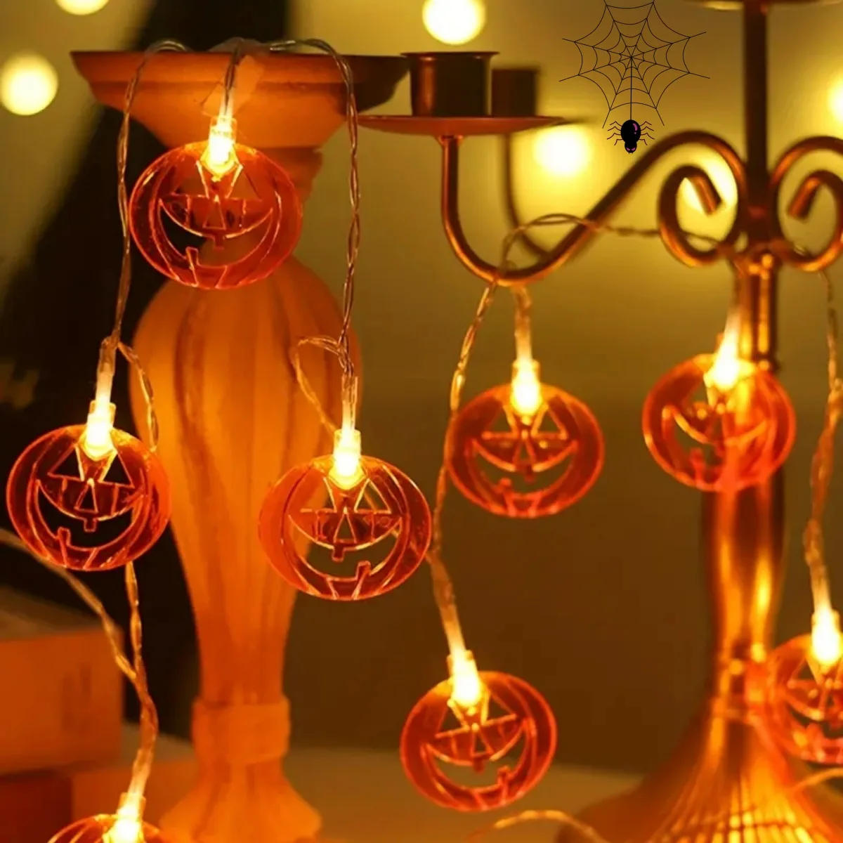 1pc LED Halloween Hollow Pumpkin String Light Battery Powered Waterproof Fairy Atmosphere Hanging Lamp Suitable For Halloween