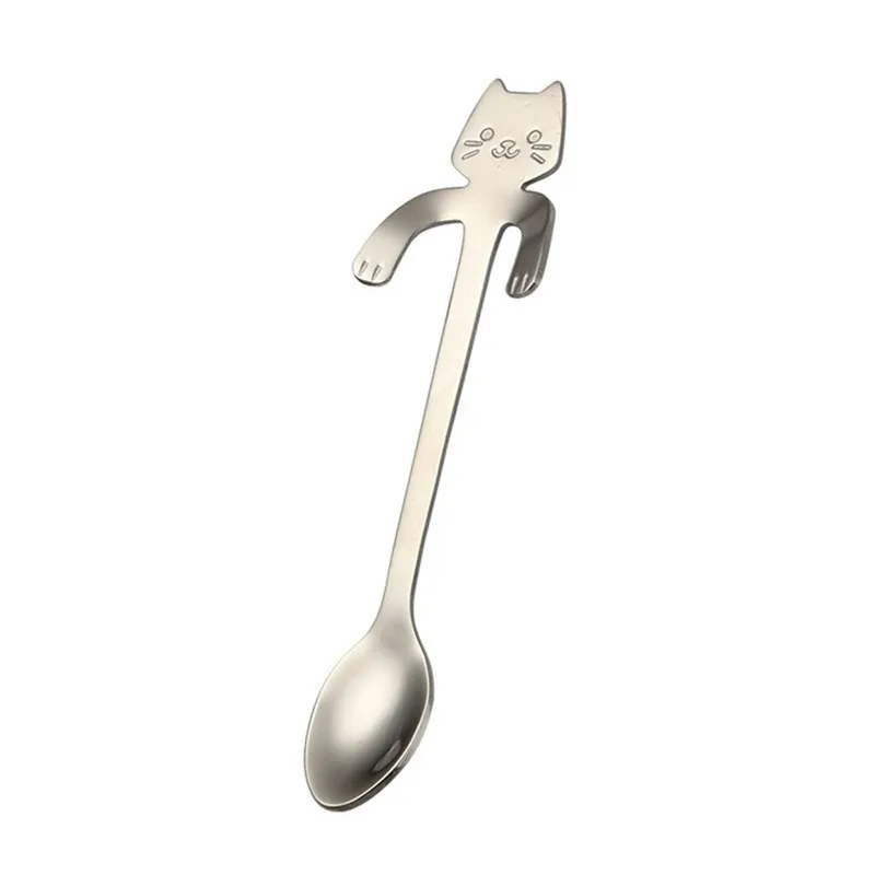 1pc Stainless Steel Spoon Fork Portable Tableware Cute Cat Paw Shaped Dinnerware Adults Kids Coffee Tea Stirring