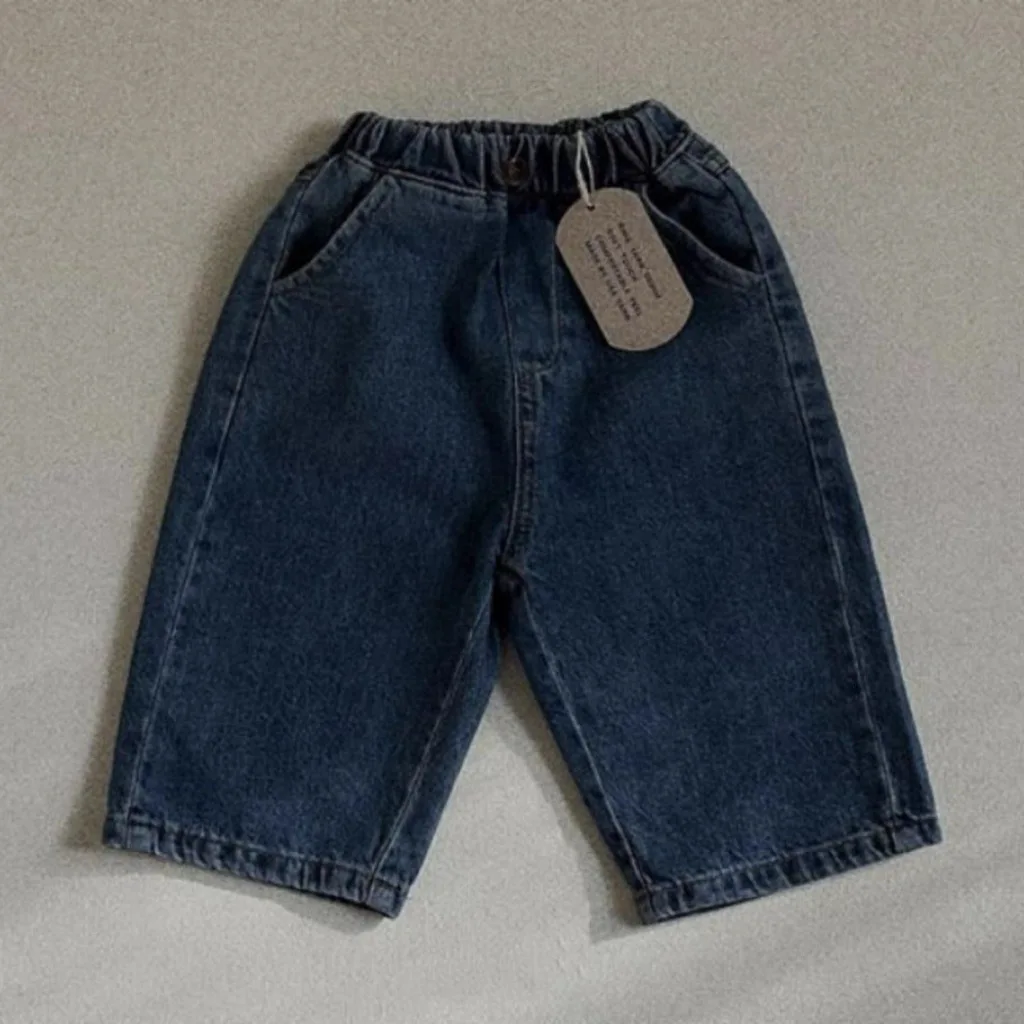 2024 Spring Autumn Boy Girl Children Retro Loose Jeans Baby Casual Denim Pants Solid Kid Pockets Cotton Trousers Infant Clothes