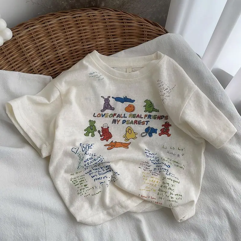 2025 Cartoon Baby T-shirts Korea Style Children's Baby Short Sleeve Printing Tees For Boys Girls