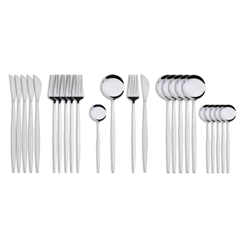 Description: 6×Dinner Knife Length: 22cm ------------------------------------------------------ 6×Dinner Spoon Length: 20 ------------------------------------------------------ 6×Dinner Fork Length: 21 ------------------------------------------------------ 6×Tea Spoon Length:13cm ------------------------------------------------------ Totally 24 items a set, Knife + Spoon + Fork + Tea Spoon ------------------------------------------------------- Packaging: OPP bag ------------------------------------------------------- Product quality grade: stainless steel ------------------------------------------------------- Applicable occasions: wedding, party, mother&;s day, children&;s day, Christmas, family, restaurant, clubhouse, etc Use matters 1 no longer position it in high temperature, solid acid, stable alkali solution 2 is not really helpful to use metal balls and different demanding tools to scrape, it's easy to damage the electroplating layer three the tableware is washed with water, it's going to be wiped dry in time with a cloth, and do not place it in a humid, corrosive environment DON&;T PUT IT IN THE DISHWASHER Note: The products in this shop are manually measured, there will be 1-2mm error, the demonstrate shows different colours and the actual product color difference, intellect those who take care to shoot Buyers please study the size obviously when ordering to bypass making errors and inconvenience to you!
