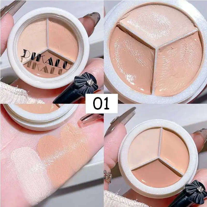 Description: Three-color concealer plate, 3 color designs, one plate can cover all parts of the face Dark circles, acne marks and nasolabial folds can be effectively concealed According to your skin color, the three colors can be reconciled with each other Bring up a concealer color that is more suitable for your skin tone Gently draw a circle on the cream with your fingers, and you can find that the concealer has a certain degree of moisture It won't be particularly dry and lasts for a long time Specifications: Name: Three-color concealer tray Weight: 33g Texture: a certain degree of moisture, long-lasting concealer Suitable for skin: normal Feature: Dark circles, acne marks and nasolabial folds can be effectively concealed According to your skin color, the three colors can be reconciled with each other Bring up a concealer color that is more suitable for your skin tone Package Included: 1 * concealer tray Notes: Due to the difference between different monitors, the pictures may not reflect the actual color . Compare the detail sizes with yours, please allow 1-3cm error, due to manual measurement. Please leaving a message before you give the bad feedback, if the products have some problems. Thanks for your understandings.