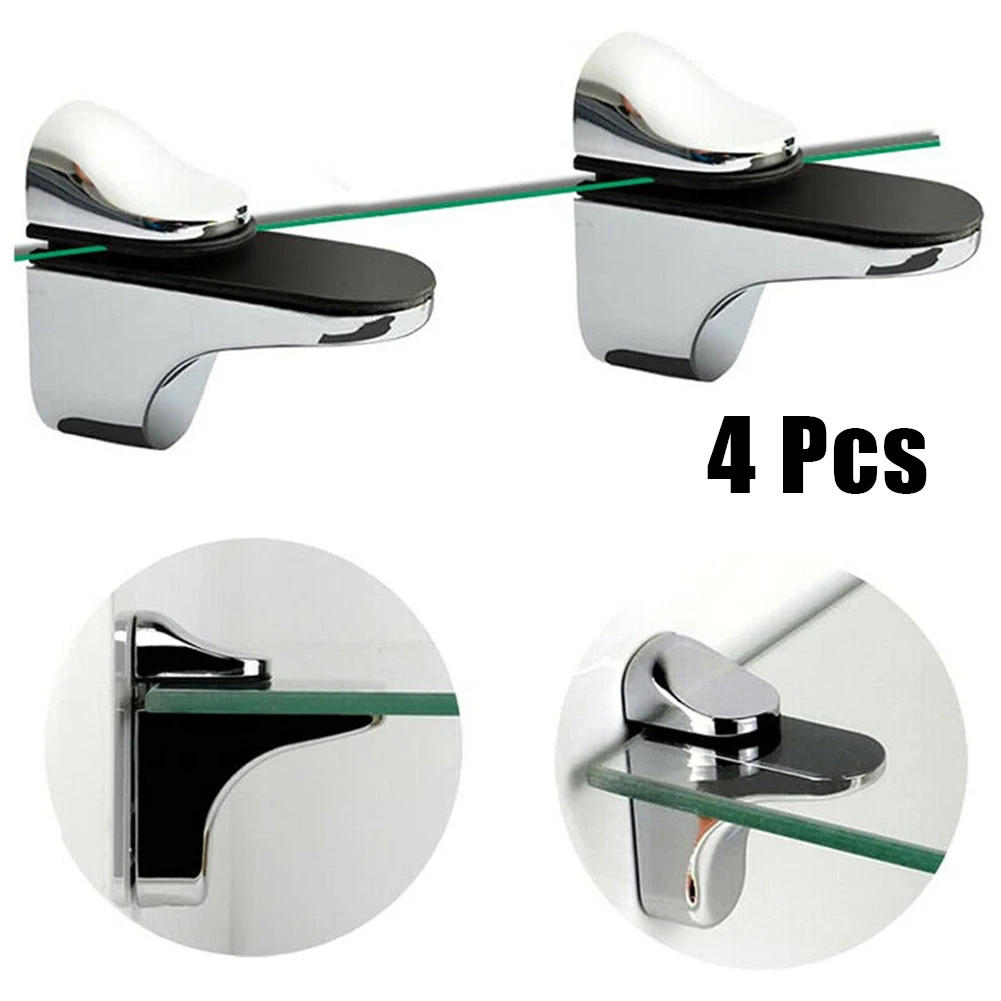 4pcs Zinc Alloy Shelf Clamp Glass Shelf Support Plate Holder Bracket Large Glass Clamp Brackets Storage Holders Part Hardware