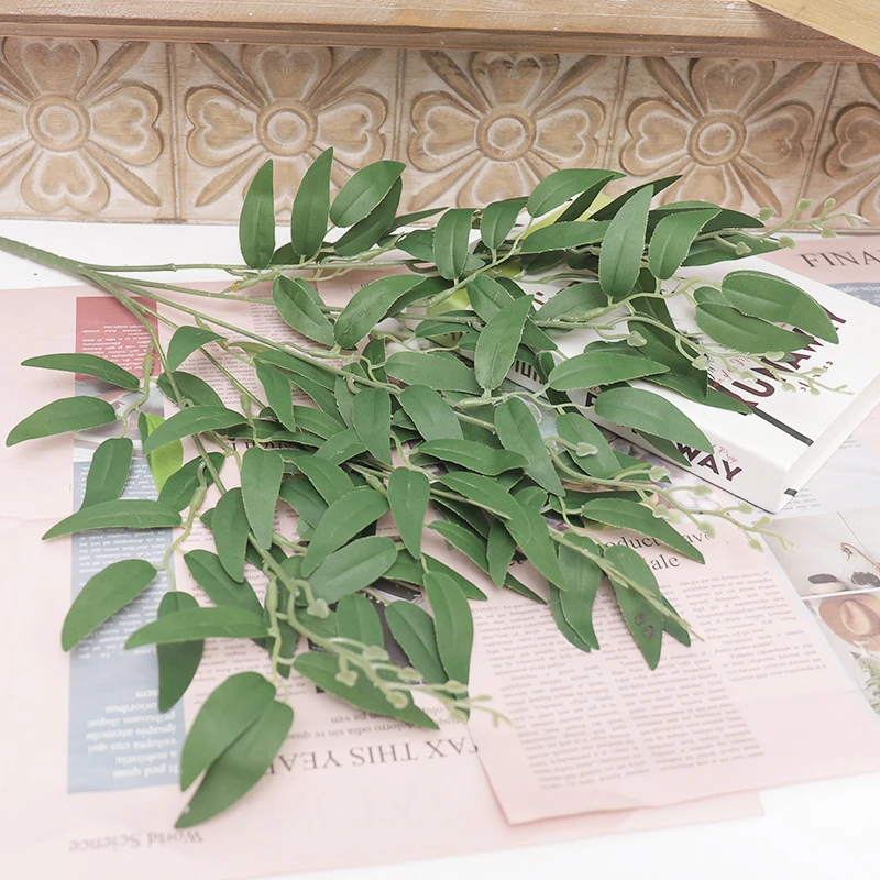 5 Branches Artificial Willow Bouquet Silk Fake Green Leaves Wedding Backdrop Christmas Decor Faux Foliage Jungle Party Plants