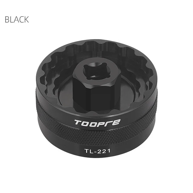 TOOPRE Bottom Bracket Cup Tool five usual in one tool Brand: TOOPRE Name: bottom bracket sleeve Weight: about 98g Material: aluminum alloy Color: black, blue, red, orange Features: High-strength aluminum alloy material, light-weight design, CNC finishing, precision enamel shape, anodizing, round and smooth, knurling process, 5-in-1 function, masking commonest one-piece hollow shaft sizes on the market Fit for 1, BB91/BB109/BB30SH/PF30SH/BB86-30/BB30-30 SM-BB52 2, SM-BBR60/MT800 3, SM-BB93/BB9000/BB9100 4, SR-DUB series 5, F- MEGA BSA30 and MEGA BB386 For 3/8"(9) square torque wrench mount