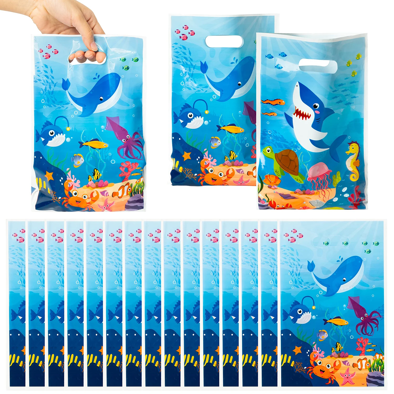 50Pcs Animal in the Sea Party Favor Bag Marine Life Ocean Themed Goodie Bag with Die Cut Handle Whale Shark Gift Bags Birthday