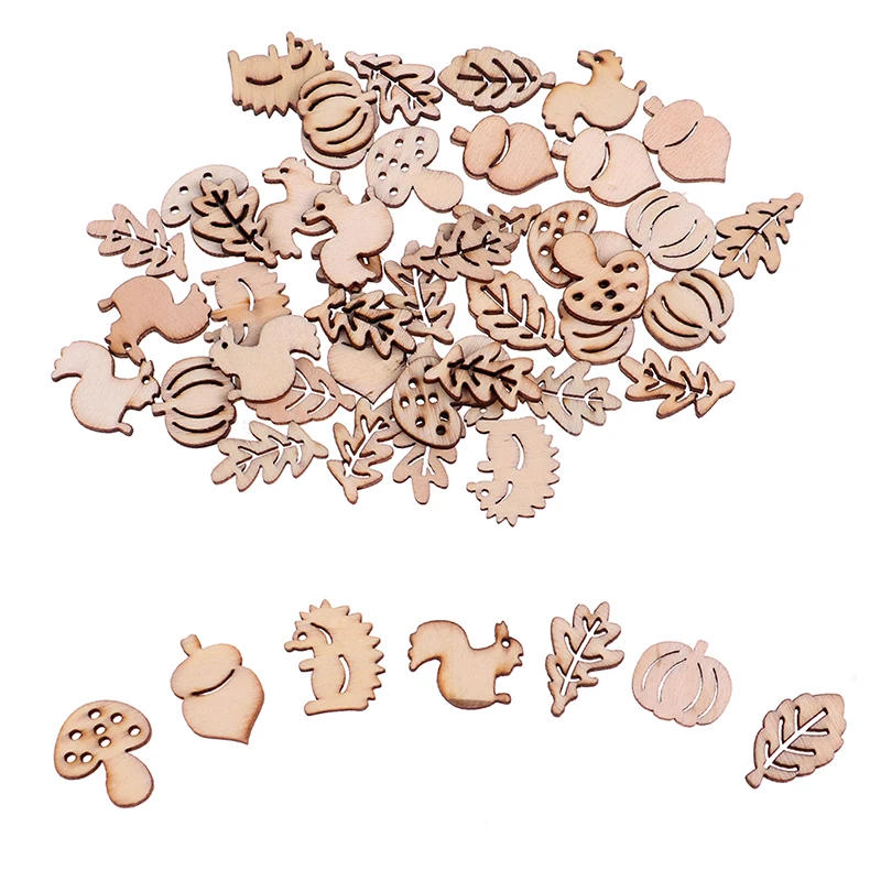 50pcsMixed Wooden Craft Squirrel Leaves Mushroom Shape Hedgehog Decoration Basteln Sewing Accessories Diy En Feutrine Сделай Сам