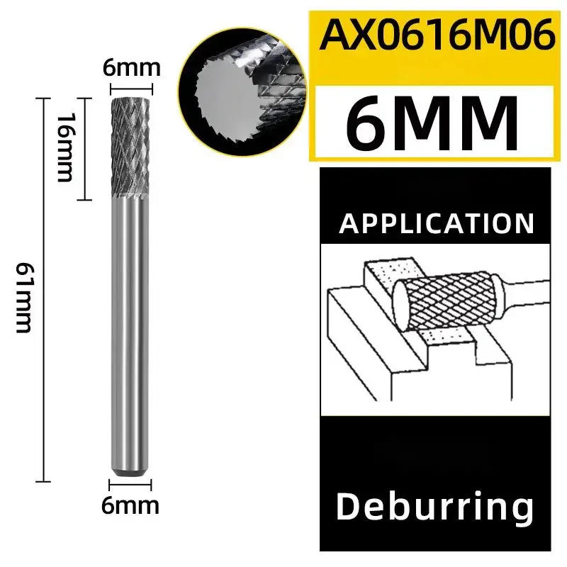 6mm AX Type Head Tungsten Carbide Alloy Rotary File Drill Milling Carving Bit Point Burr Die Grinder Abrasive Tools for Metal
